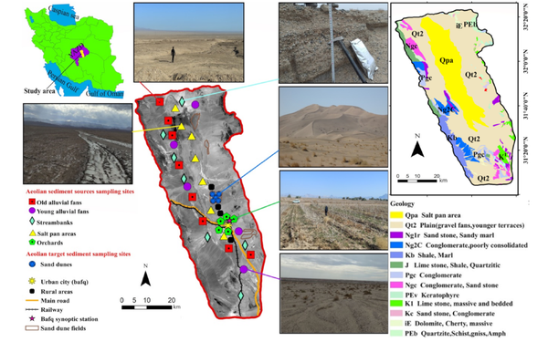 Spatiotemporal variations in aeolian sediment source fingerprinting using geochemical tracers and a Bayesian mixing model.