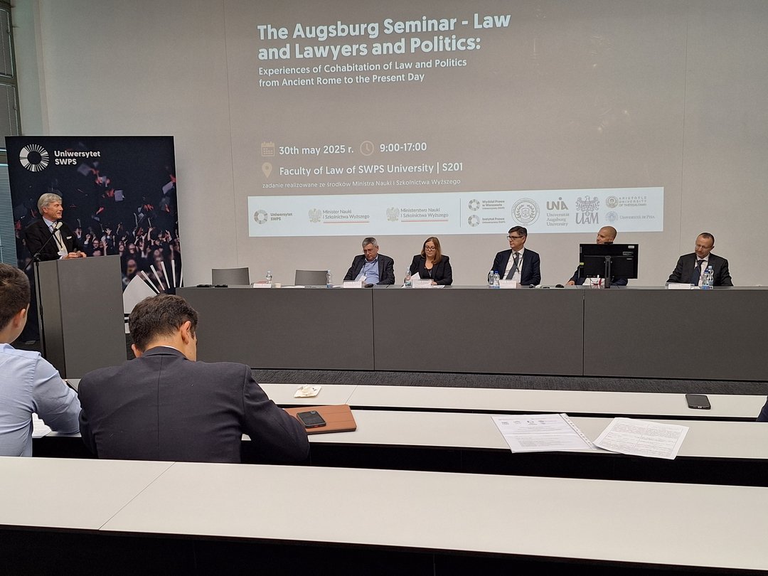 Wie schon im Sommer 2015 veranstaltete Prof. Dr. Christoph Becker auch im Sommersemester 2016 ein grenzüberschreitendes rechtshistorisch-rechtsvergleichendes Seminar. Partner und Gastgeber auf polnischer Seite war Prof. Dr. Bronis?aw Sitek von der Sozial- und Humanwissenschaftlichen Universit?t Warschau. Auf einem intensiven Seminartag trugen nach einem Einführungsvortrag von Prof. Dr. Becker insgesamt 16 Teilnehmerinnen und Teilnehmer aus den Forschungen zu ihren Seminararbeiten und Dissertationen vor. Anderntags erkundeten die Augsburger Reisenden Warschau und seine für Rechtsleben, Geschichte, Wissenschaft und Kultur bedeutsamen Einrichtungen, beginnend mit einem Besuch des Obersten Gerichts der Republik Polen.