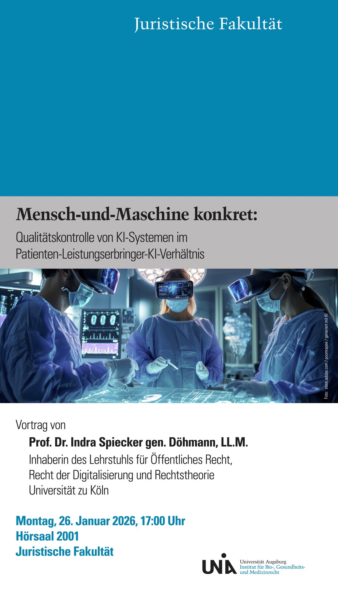 Am 26. Januar 2026 wird Frau Professor Dr. Indra Spiecker gen. D?hmann einen Vortrag zum Thema: "Mensch-und-Maschine konkret: Qualit?tskontrolle von KI-Systemen im Patienten-Leistungserbringer-KI-Verh?ltnis" halten.?