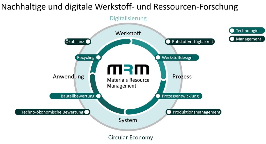 In diesem Kontext forschen die beteiligten Lehrstühle und Professuren sowohl an neuen Strukturwerkstoffen, deren Eigenschaften und den zugeh?rigen Prozessrouten als auch an den ?konomischen, ?kologischen und gesellschaftlichen Herausforderungen im Sinne der Kreislaufwirtschaft, die damit verbunden sind. Dabei widmet sich das MRM der Betrachtung vollst?ndiger Wertsch?pfungsketten und deren Optimierung bezüglich Ressourcen- und Energieeffizienz. Das Spektrum umfasst Arbeiten im Bereich der Materialchemie und der Entwicklung polymerer und keramischer Verbundwerkstoffe sowie hybrider Werkstoffverbunde und deckt auch Fragen zur Fertigungstechnologie ab. Damit arbeiten die Wissenschaftlerinnen und Wissenschaftler übergreifend von der mikroskopischen Ebene im Laborma?stab bis zur Charakterisierung von Bauteilen unter anwendungsnahen Beanspruchungen. Diese Aspekte werden zudem in industriell relevanten Skalen erforscht und konsequent hinsichtlich einer vollst?ndig digitalisierten Prozess- und Simulationskette weiterentwickelt. Mit diesem Portfolio bietet das MRM die Basis für den Einsatz von künstlicher Intelligenz in der Produktion sowie der Materialwissenschaft und Werkstofftechnik.