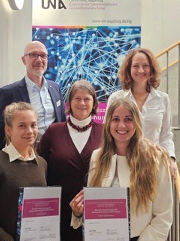 Dr. Janine Blessing, ehemalige wissenschaftliche Mitarbeiterin am Institut für 新万博体育下载_万博体育app【投注官网】ien, Wissen und Kommunikation (imwk), wurde beim Jahreskolloquium 2025 des Zentrums für Interdisziplin?re Gesundheitsforschung (ZIG) der Universit?t Augsburg für ihre hervorragende Doktorarbeit mit Gesundheitsbezug ausgezeichnet. Ihre Promotion zum Thema ?新万博体育下载_万博体育app【投注官网】izinische Schlüsseltechnologien in den 新万博体育下载_万博体育app【投注官网】ien: Eine Analyse der Wirkung auf Informationssuche und Anschlusskommunikation“ schloss Dr. Janine Blessing (siehe Foto vorne rechts) bereits 2024 erfolgreich ab. Die Erst- und Zweitbetreuung übernahmen Prof. Dr. Helena Bilandzic (siehe Foto hinten rechts) und Prof. Dr. Susanne Kinnebrock (siehe Foto mittig) vom Lehrstuhl Rezeption und Wirkung bzw. ?ffentliche Kommunikation des imwk. Das ZIG würdigt j?hrlich hervorragende Master- sowie Doktorarbeiten mit Gesundheitsbezug. In diesem Jahr wurden zwei Arbeiten ausgezeichnet: neben der Doktorarbeit von Dr. Janine Blessing eine Masterarbeit, die an der Wirtschaftswissenschaftlichen Fakult?t entstand. Das imwk gratuliert den Ausgezeichneten herzlich! Dr. Janine Blessing arbeitet seit Oktober 2024 an der Universit?t Zürich. Ihre Doktorarbeit wurde vom Springer-Verlag ver?ffentlicht.