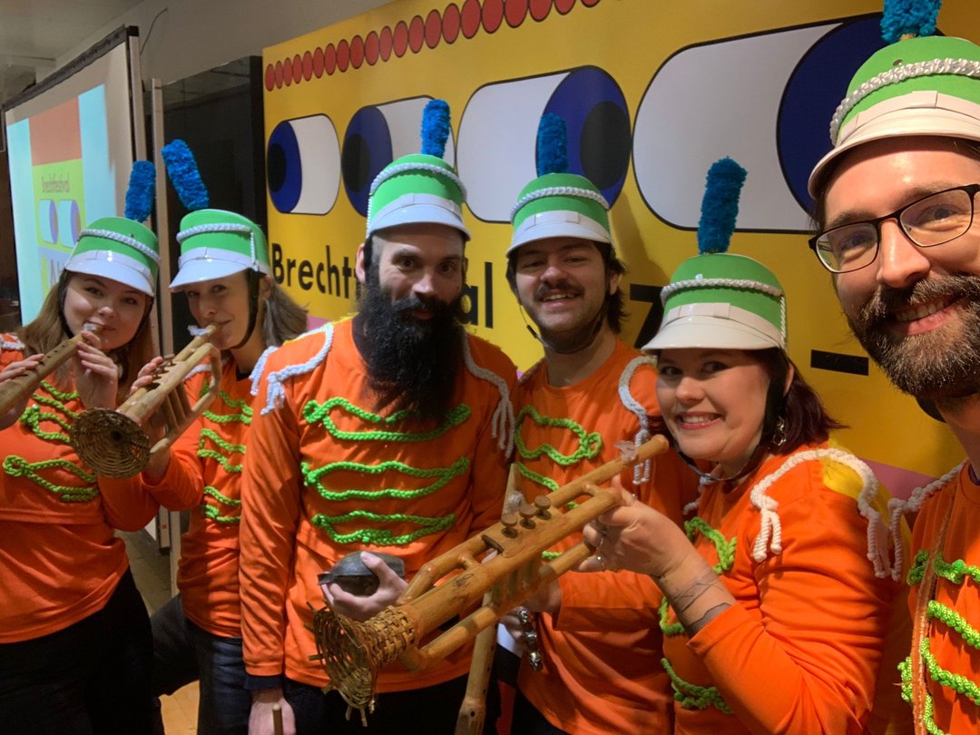 "Mit einer feierlichen Prozession und einer anschlie?enden Zeremonie er?ffnet das Brechtfestival das Festivalzentrum mit dem Caritas Caf¨¦ im Herzen der Stadt.?Den spektakul?ren H?hepunkt bildet der Einzug der Brechtfestival-Marschkapelle, die die bildende K¨¹nstlerin und Musikerin TinTin Patrone eigens zu diesem Zweck zusammenschart. Im MUSIKONG BUMBONG Expanded Marching Band Project versammelt sich eine bunt zusammengew¨¹rfelte Gruppe von Augsburger B¨¹rgerinnen und B¨¹rgern. In bunten Paradeuniformen spielen sie Stra?enmusik mit Instrumenten aus Bambus nach philippinischem Vorbild." (Webseite? Brechtfestival)